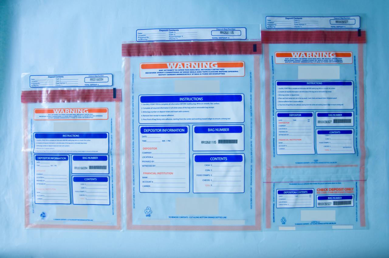 Rretail deposit bags are available in three basic formats: single pocket, vertical 2-pocket and horizontal 2-pocket.